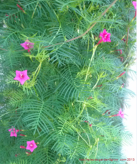This plant is a cypress vine (Ipomoea quamoclit) but is often called Star of Texas.