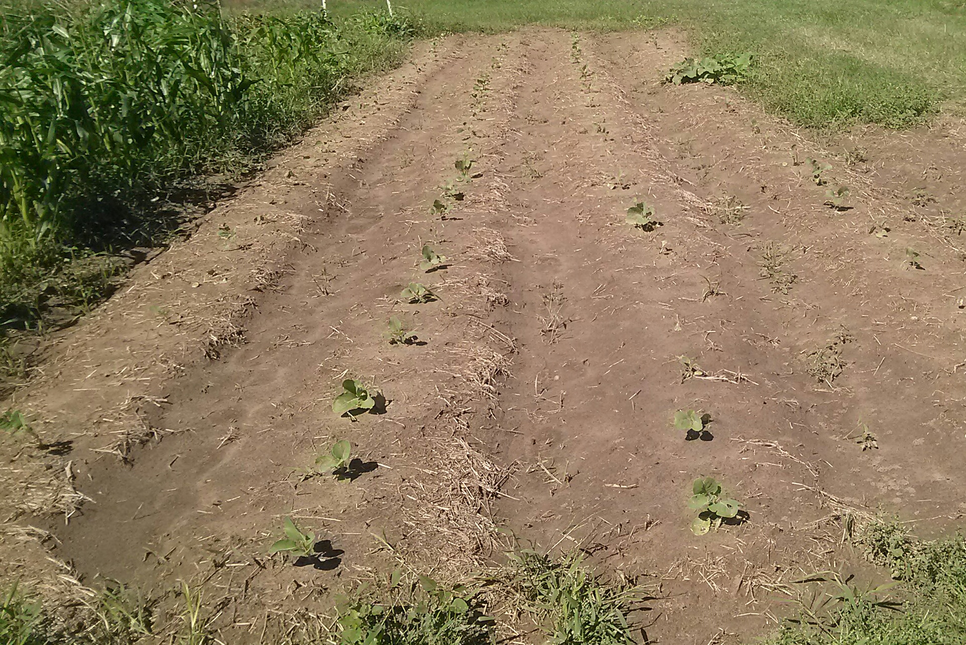 On October 19, 2013, small broccoli, cabbage and cauliflower plants were transplanted into the garden in October. Four rows were planted (from left to right, picture to left); broccoli (Waltham), cabbage (Copenhagen), cabbage (Early Jersey Wakefield), and cauliflower (Snow Ball). Notice also — the corn plants on the far left of the picture.
