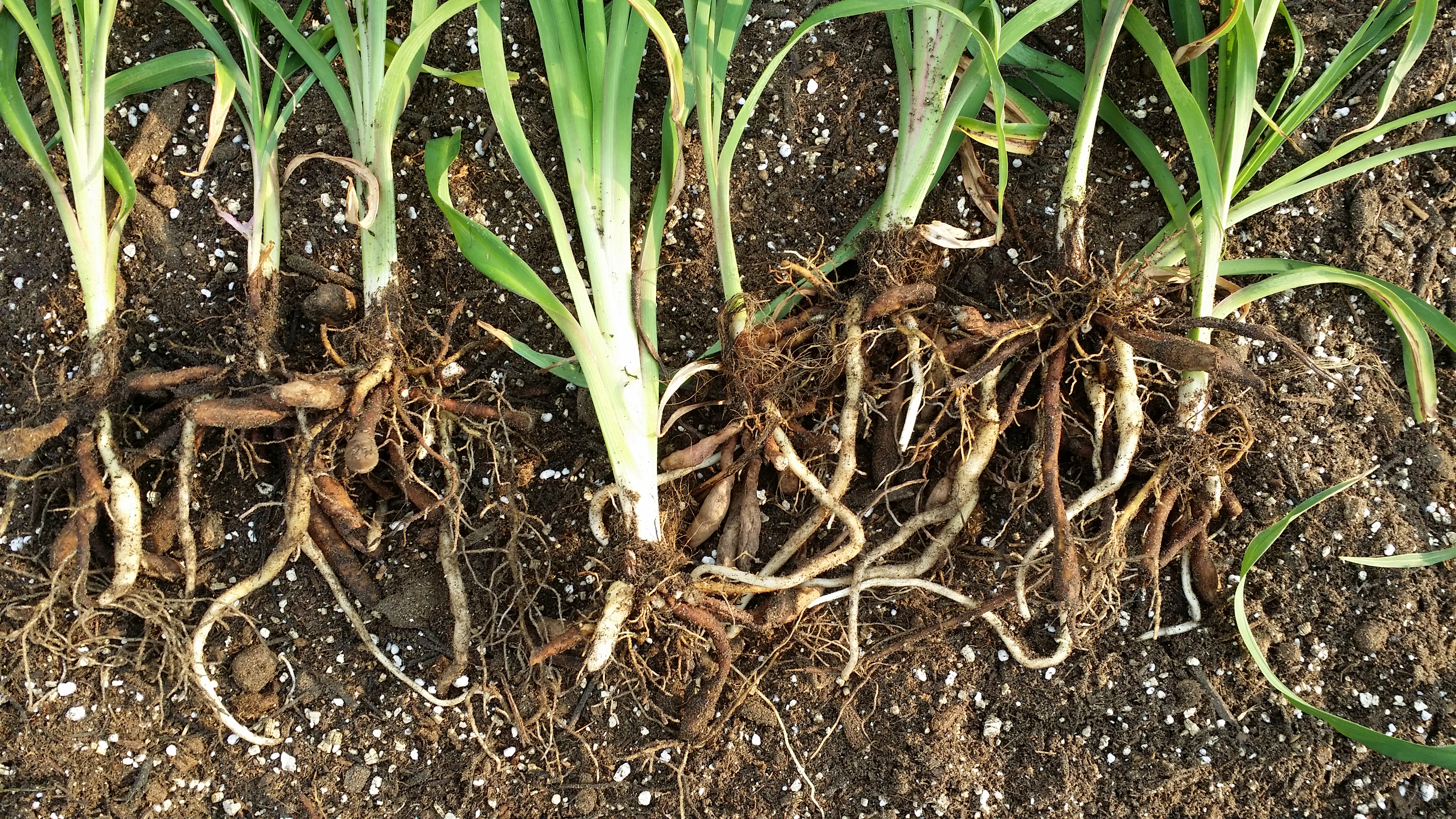 When preparing to divide, I first check the Root and Tuber Health (see photo, left). There is plenty of white root material observed and this illustrates what we want to see—healthy new root growth. The root system is great, but it also makes the clumps a little more challenging to divide without damaging the plants (less damage results in quicker recovery in the new location).